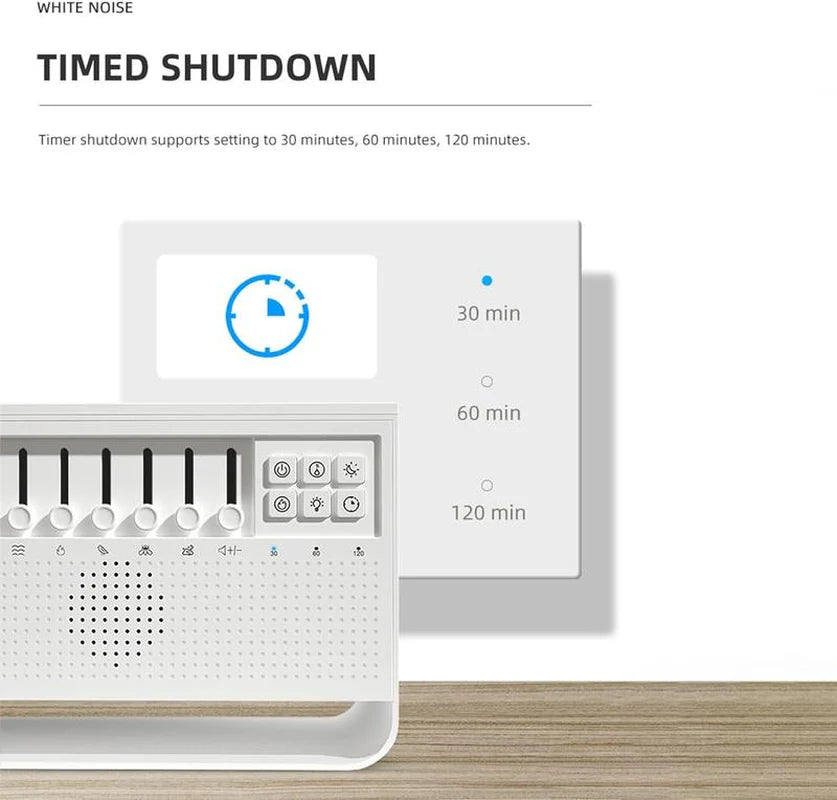 - Help Fall Asleep Quickly: The sound of a white noise humidifier can help you fall asleep quickly and wake up refreshed in the morning. Optional automatic shutdown timer, set the timer to 30, 60, or 120 minutes for this white noise humidifier throughout the night.